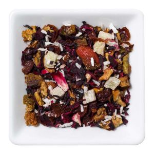 De naam (ananas gek op cocos) verklapt al veel...Ananas en kokosnoot vormen de basis van deze fruitinfusie die men zowel warm als koud kan drinken. Ook als basis voor cocktails te gebruiken. Erg mooi in balans tussen het zoete van de kokos en het zure van de hibiscus.