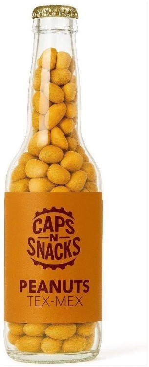 Deze heerlijke Tex-Mex gekruide pinda′s van Caps N Snacks zijn verpakt in een uniek bierflesje. Een speelse en pittige aanvulling voor elke biermand, geschenkverpakking of relatiegeschenk.