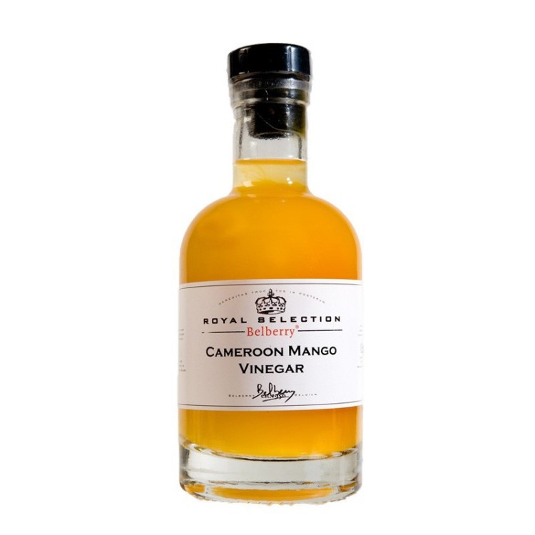Een azijn bereid met zoete en tropische mango uit Kameroen. Het conserveringsproces vindt ook op geheel natuurlijke wijze plaats door autopasteurisatie. Niet voor niets smaken de azijnen van Belberry alsof ze zelf gemaakt zijn. Puur fruit, puur natuur.