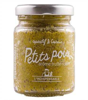 Petits pois (68%), huile d'olive, ail doux, gingembre, sel, arôme truffe (0,3%), basilic, jus de citron, poivre noir. Traces possibles de fruits à coque et d'arachide.