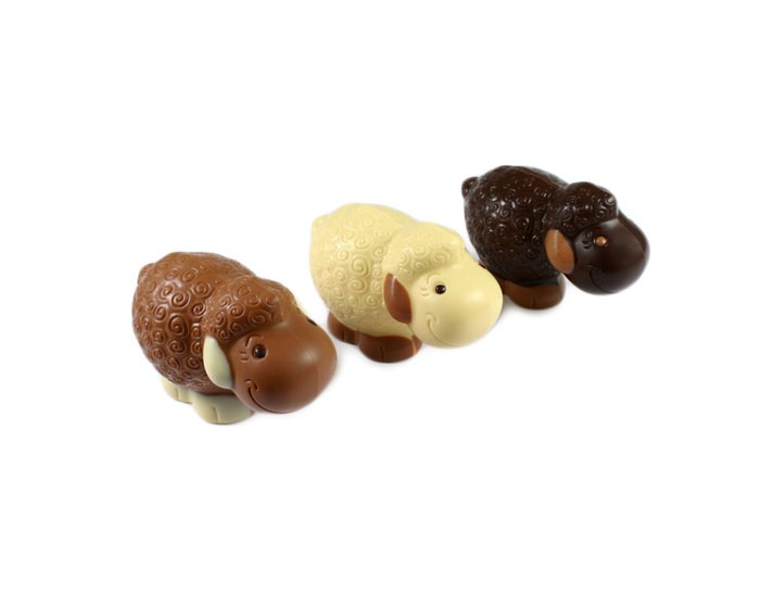 Een Wollie schaap van 14 cm in witte chocolade.