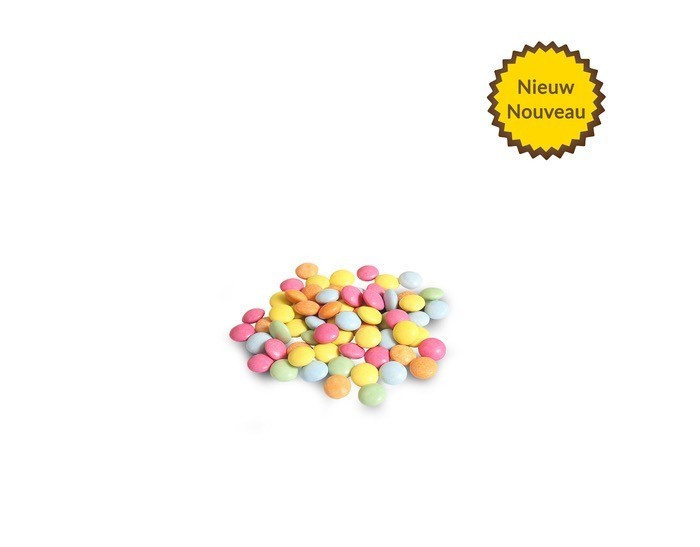 Ingrediënten: suiker, cacaoboter, volle melkpoeder, cacaomassa, magere melkpoeder, emulgator, natuurlijk vanillearoma, concentraten, kleurstoffen.