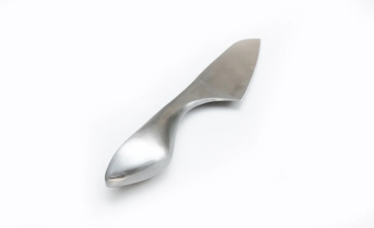 The chef knife is in the shape of a Santoku knife and a chef knife, which is designed for detailed chopping and slicing at the same time. Inspired by the visually impaired individuals, who prefer a small knife for better control, the knife is carefully designed with ergonomic functionality to feel like an extension of your hands. So you can use it even in the dark.