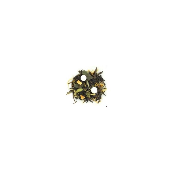 Mengeling van witte en groene thee, ananas, papaya, rozijnen, koriander, kaneel, kokos, kardamon, mango, melkpoeder, merengue, appelsien, citroen, abrikoos, en gegrilde amandelen.