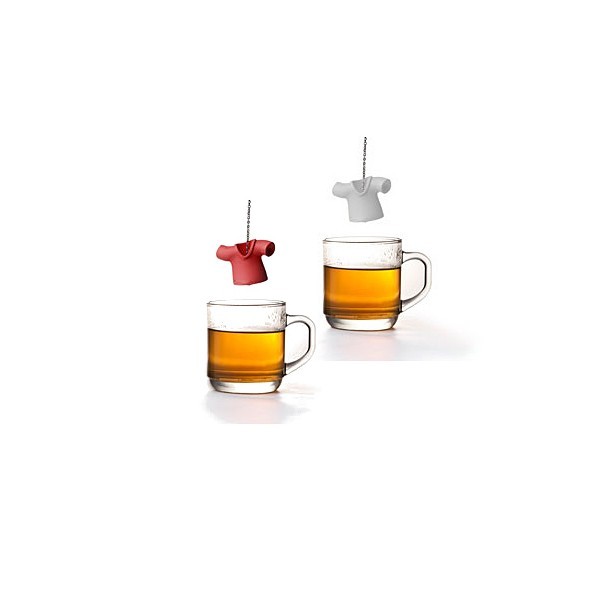 Je vult deze rode Tea Shirt met verse thee, hangt 'm in je kopje, en even later heb je een kopje heerlijke thee...Aan het einde van de tea shirt zit een memoclipje waaraan je een bericht voor je geliefde of een andere boodschap achter kunt laten.