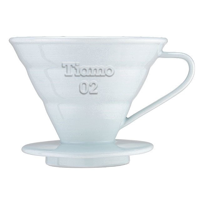 De Tiamo Dripper V02 opschenkfilter is uitgevoerd in keramiek. Plaats de filter op uw kop of koffiepot en opschenken maar! Deze filterhouder is gemakkelijk schoon te maken (vaatwasmachine bestendig!). Verder heeft deze filter een snelle warmte absorbtie.