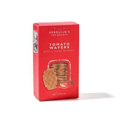Heerlijk knapperige kaasbiscuit met tomaat en basilicum. Heerlijk zijn om zo op te eten, maar de wafels zijn extra lekker wanneer je ze belegd met bijvoorbeeld mozzarella, burrata of verse pesto.
