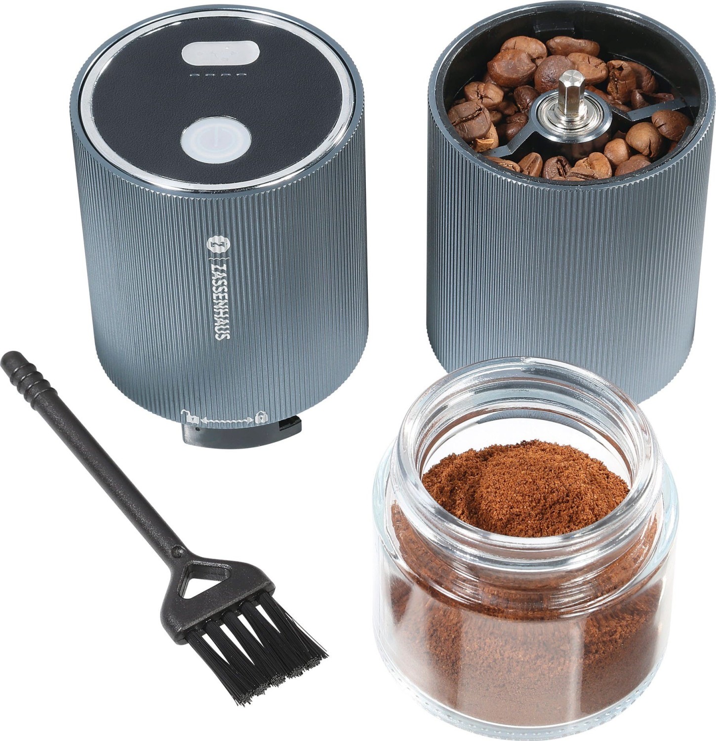 Met de MASTER USB koffiemolen kun je genieten van versgemalen koffie - thuis, op kantoor of onderweg. Het enige wat nodig is, is een druk op de knop: De robuuste roestvrijstalen molen werkt gelijkmatig en behoudt de volle smaak van je bonen. Je kunt de maling moeiteloos aanpassen, van espressofijn tot filterformaat. Het poeder valt direct in het glazen reservoir en is direct klaar voor bereiding. Modern, compact en perfect voor iedereen die van goede koffie houdt.
