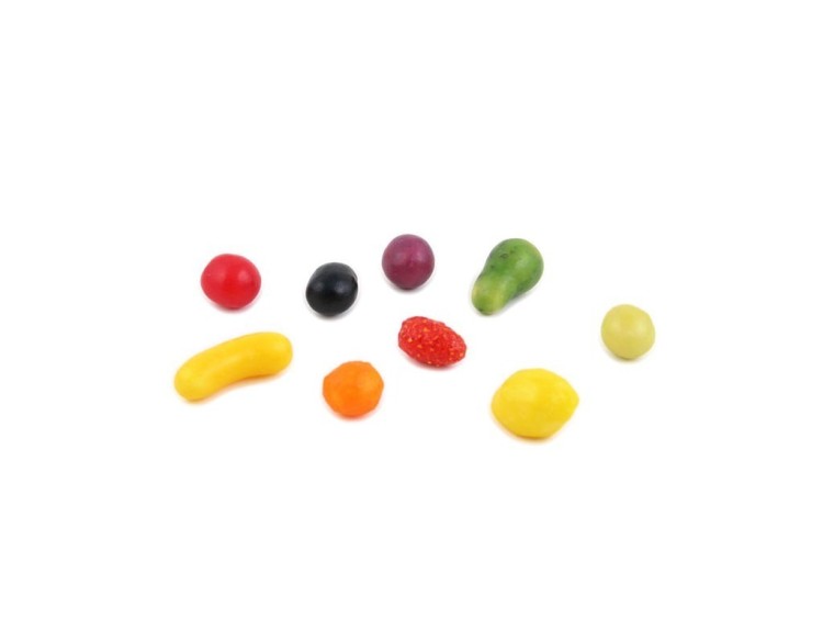 Ingrediënten: suiker, glucosestroop, agar-agar, chocolade 10% (cacaomassa, suiker, boter, emulgator, vanille), voedingszuur, ananasaroma, kleurstof.